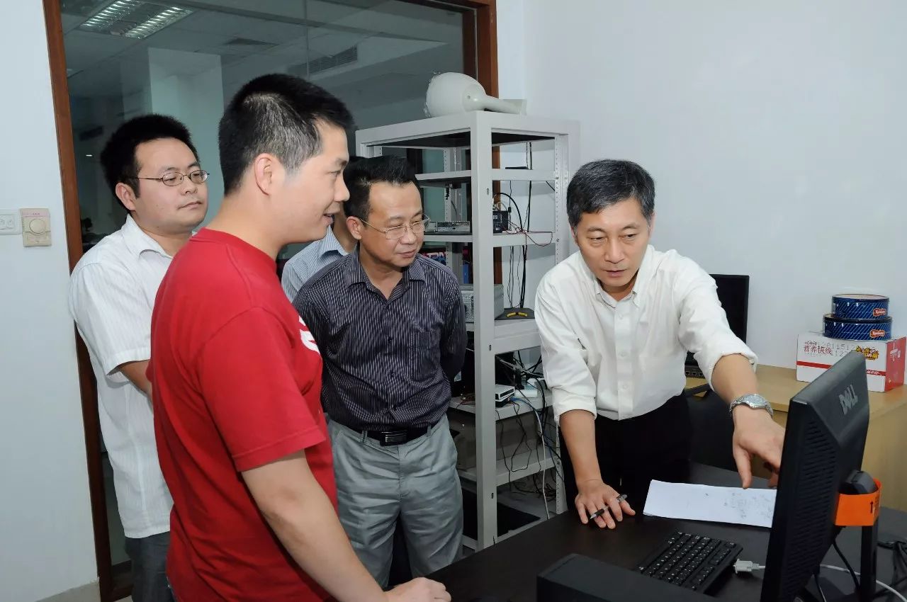 中國工程院錢(qián)清泉院士(右二)在指導我司軌道(dào)交通(tōng)研發工作(zuò)